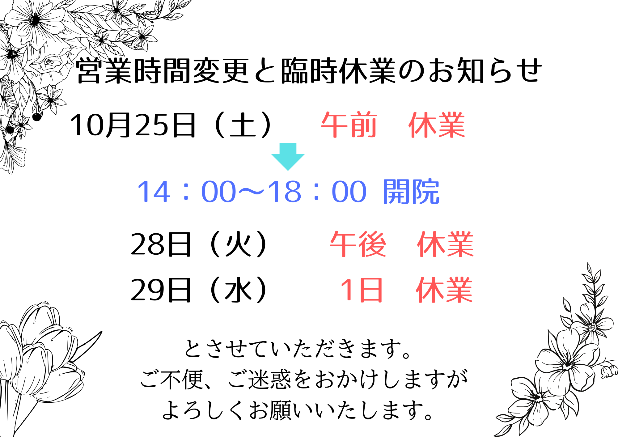 10/25(土)は都合により14:00~18:00営業とさせていただきます。